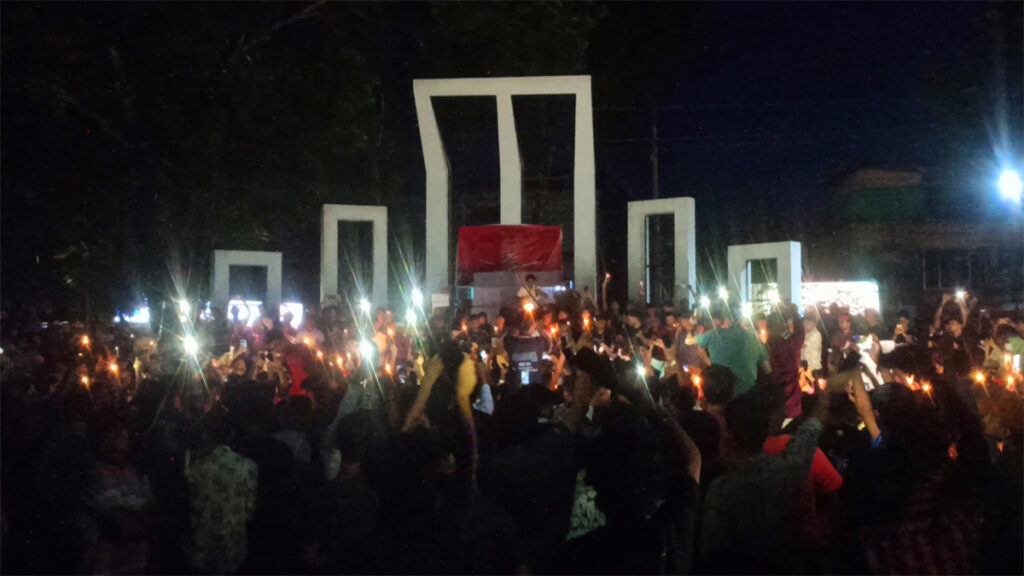 এতে জেলার বিভিন্ন বিদ্যালয়-কলেজের শিক্ষার্থী ও তাদের অভিভাবকরা অংশগ্রহণ করেন। এ সময় শিক্ষার্থীরা সারাদেশে ছাত্র-জনতার ওপর হত্যার বিচার, মিথ্যা মামলা প্রত্যাহার, দমনপীড়ন বন্ধ, বিশ্ববিদ্যালয়সহ সকল শিক্ষা প্রতিষ্ঠান খুলে দেয়ার আহবান জানান। সেই ভয়ঙ্কার দিনগুলোতে ঘটে যাওয়া শহীদ ও আহতদের স্মৃতিচারণ করেন তারা। পরে মোমবাতি প্রজ্জ্বলন করে ফেস্টুন নিয়ে বিভিন্ন স্লোগান দেয় শিক্ষার্থীরা।
