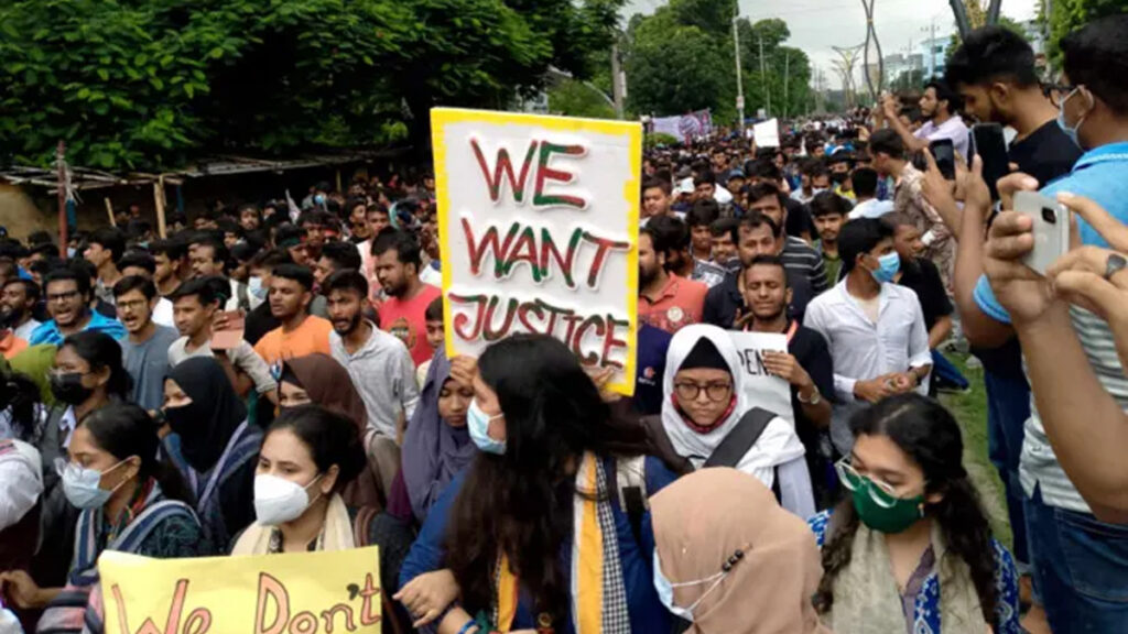 শান্তিপূর্ণ গণমিছিলে হামলা করে হত্যার প্রতিবাদ ও নয় দফা দাবিতে বিক্ষোভ মিছিল করছে রাজশাহী প্রকৌশল ও প্রযুক্তি বিশ্ববিদ্যালয়ের (রুয়েট) শিক্ষার্থীরা। বিক্ষোভ মিছিলে রাজশাহী বিশ্ববিদ্যালয়সহ নগরীর বিভিন্ন স্কুল-কলেজের শিক্ষার্থীরা অংশ নিয়েছে। একাত্মতা পোষণ করে এতে যোগ দিয়েছেন রাজশাহী বিশ্ববিদ্যালয় ও রুয়েটের শিক্ষকরাও।