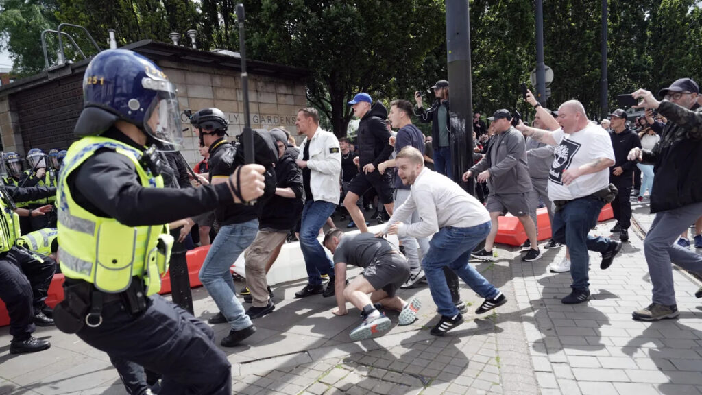 সম্প্রতি ইংল্যান্ডে তিন শিশু ছুরিকাঘাতে নিহত হওয়ার ঘটনাকে কেন্দ্র করে শুরু হওয়া কট্টর ডানপন্থিদের বিক্ষোভ ক্রমেই যুক্তরাজ্যের বিভিন্ন শহরে ছড়িয়ে পড়ছে। দেশটির বিভিন্ন স্থানে পুলিশের সঙ্গে সংঘর্ষের মধ্যে কর্মকর্তারা আরও সংঘাতের আশঙ্কা করছেন। রোববার (৪ আগস্ট) এক প্রতিবেদনে ব্রিটিশ সংবাদমাধ্যম বিবিসি এ তথ্য জানায়।