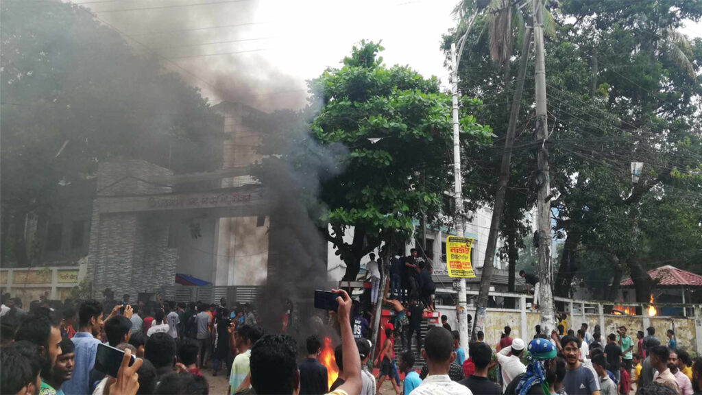 চট্টগ্রামে সিএমপি’র কোতোয়ালি থানায় আগুন দেয়া হয়েছে এছাড়া রাউজান উপজেলা আওয়ামী লীগের কার্যালয়ে ভাঙচুর আও আগুন দেয়ার ঘটনা দেয়া হয়েছে।