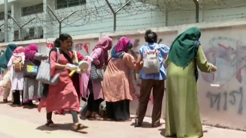 আন্দোলনের বিভিন্ন দেয়ালে যা যা লেখা হয়েছিল, তার সব মুছে দেয়ালগুলোতে নতুন করে রঙ করছে শিক্ষার্থীরা। বুধবার (৭ জুলাই) ঢাকা বিশ্ববিদ্যালয় এলাকায়, এ কার্যক্রম করতে দেখা গেছে বিভিন্ন ইউনিভার্সিটি, কলেজ ও স্কুল শিক্ষার্থীদের।