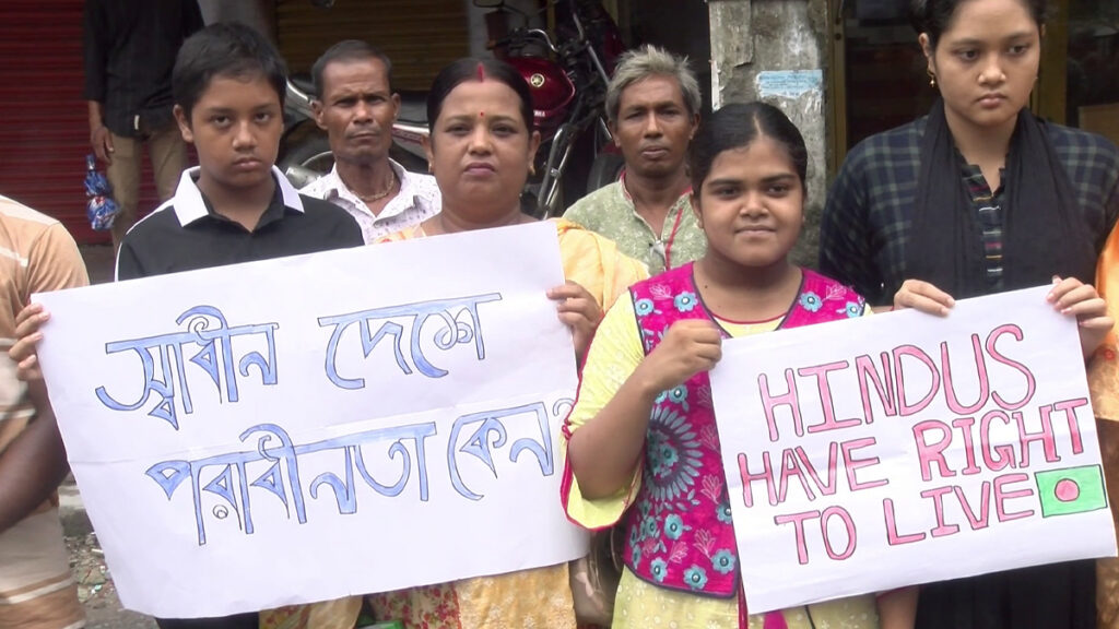 সনাতন ধর্মাবলম্বীদের উপর হামলা-নির্যাতন, মন্দির-মঠ, ঘরবাড়ি ভাঙচুর ও অগ্নিসংযোগের অভিযোগ এনে সারদেশের কয়েক জেলায় সমাবেশ ও মানববন্ধন হয়েছে। রোববার (১১ আগস্ট) সিলেট, চট্টগ্রাম, জামালপুরসহ দেশের বেশ কয়েকটি জেলায় বিক্ষোভ করেন সনাতন ধর্মালম্বীরা।