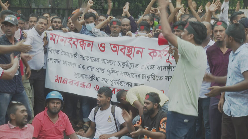 তারা বলেন, আওয়ামী লীগ সরকারের আমলে কথা না শুনলে এবং রাজনৈতিক কারণে প্রায় ১ হাজার পুলিশ সদস্যকে চাকরিচ্যুত করা হয়েছে। আদালতের রায়ের পরও তাদের অনেকে চাকরিতে যোগ দিতে পারেননি বলে অভিযোগ করেন। এর প্রতিবাদ জানিয়ে বঞ্চিত পুলিশ সদস্যরা ৬ দফা দাবি জানিয়েছেন।