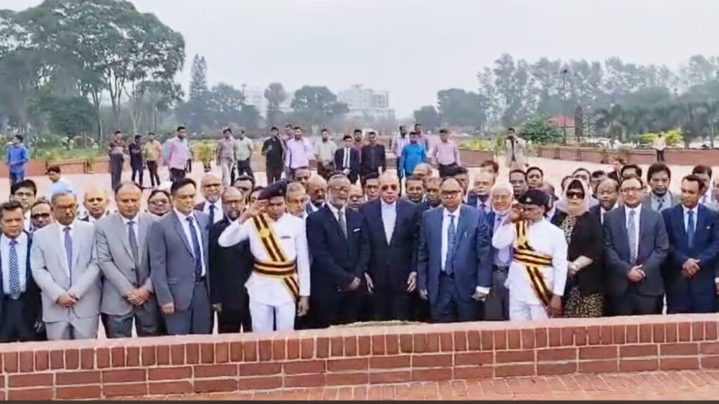 সেখানে শ্রদ্ধা নিবেদন শেষে প্রধান বিচারপতি সকাল পৌনে ১০টার দিকে জাতীয় শহীদ মিনারে পৌঁছে পুষ্পস্তবক অর্পণ করে ১৯৫২ সালের ভাষা আন্দোলনের শহীদদের প্রতি গভীর শ্রদ্ধা জানান। একইসাথে জাতীয় শহীদ মিনারে বৈষম্যবিরোধী ছাত্র আন্দোলনে শহীদদের প্রতি পুষ্পস্তবক অর্পণ করে শ্রদ্ধা নিবেদন করেন।