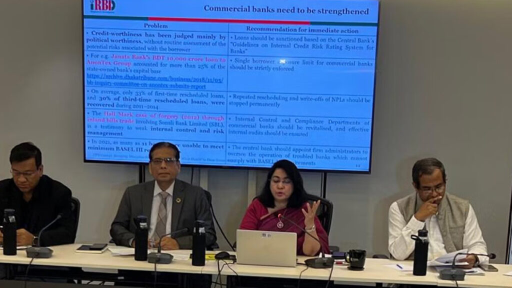 সংস্থাটি বলছে, জনগণের টাকায় দুর্বল ব্যাংকের তহবিল যোগান বন্ধ করতে হবে। বিগত সময়ে, ব্যাংকিং খাতে ঋণ পাবার যোগ্যতা বিবেচিত হয় রাজনৈতিক পরিচয় থেকে। এখান থেকে সরে আসা প্রয়োজন বলেও মন্তব্য করে সিপিডি।