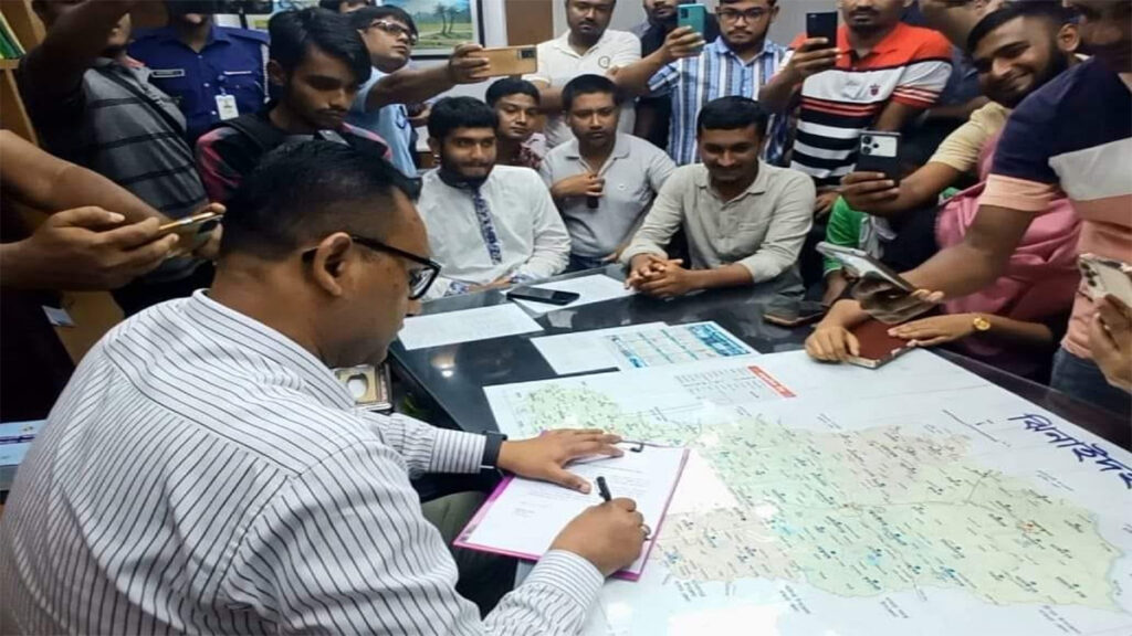 এর আগে জেলা প্রশাসক রফিকুল ইসলাম ছাত্রদের দ্বারা একপ্রকার অবরুদ্ধ হয়ে পড়েন।