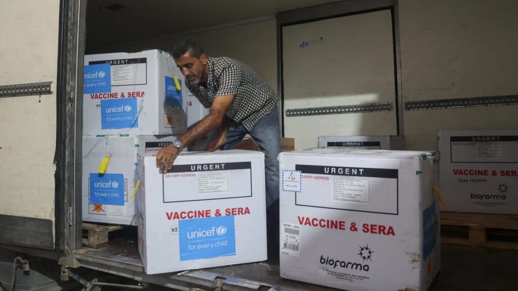 এদিকে, গাজার চিকিৎসকরা বলছেন, এখনই ব্যবস্থা না নিলে উপত্যাকাজুড়ে মহামারী আকারে ছড়িয়ে পড়বে পোলিও। পরিস্থিতি নিয়ন্ত্রণে প্রায় ১৩ লাখ পোলিও ভ্যাক্সিন প্রয়োজন। অথচ ইসরায়েলি হামলার কারণে টিকাদান কর্মসূচি সম্ভব হচ্ছে না।