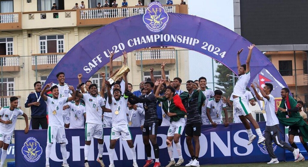 উল্লেখ্য, নেপালের মাটিতে নেপালকে ৪-১ গোলে হারিয়ে শিরোপা জিতেছে বাংলাদেশ যুবা দল। বয়সভিত্তিক ফুটবলের এই ক্যাটাগরিতে এর আগে আর কখনো শিরোপা জেতেনি লাল-সবুজের প্রতিনিধিরা। এর আগে তিনবার ফাইনালে উঠলেও চ্যাম্পিয়ন হতে পারেনি বাংলাদেশ। তবে চতুর্থবার এসেই কাঙ্ক্ষিত শিরোপার স্বাদ গ্রহণ করলো মারুফুল হকের শিষ্যরা।