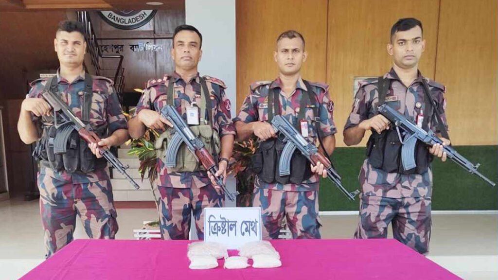 পরে জব্দ করা কার্টুনটি খুলে তার ভেতর হতে ৩ কেজি ৪০ গ্রাম ক্রিস্টাল ম্যাথ আইস উদ্ধার করা হয়। এগুলোর আনুমানিক মূল্য ১৫ কোটি ২০ লাখ টাকা বলে জানিয়েছে বিজিবি।