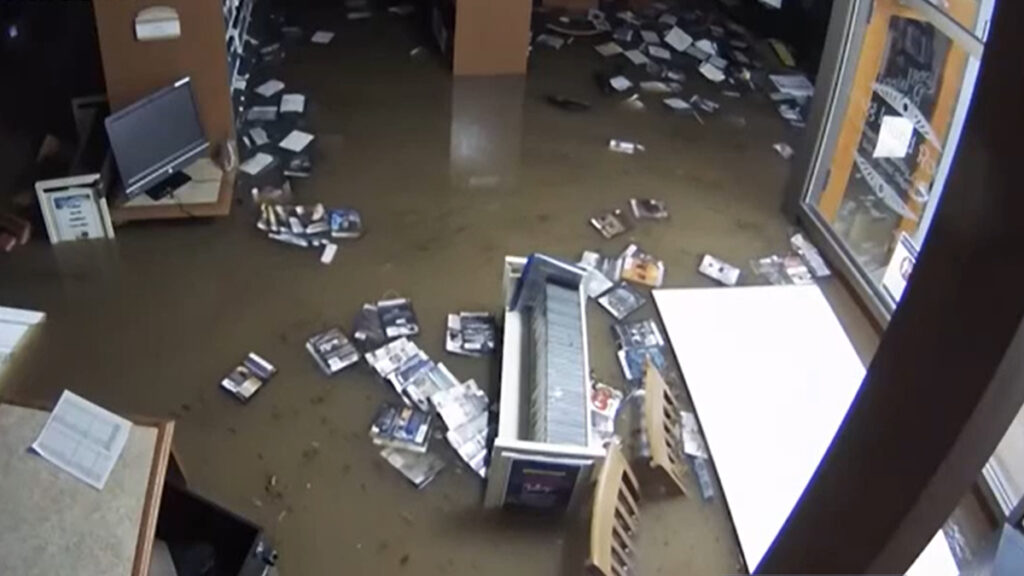 সম্প্রতি, বন্যায় ক্ষতিগ্রস্থ স্মিথ টাউন লাইব্রেরির সিসিটিভি ভিডিও প্রকাশ করে দেশটির গণমাধ্যম সিএনএন নিউজ। ফুটেজে দেখা যায়, হঠাৎ করে প্রচুর পরিমাণে পানি লাইব্রেরির দেয়াল ভেঙে ঢুকে পড়ে। পানি লাইব্রেরির নীচের স্তর বাথটাবের মতন প্রবেশ করতে থাকে।