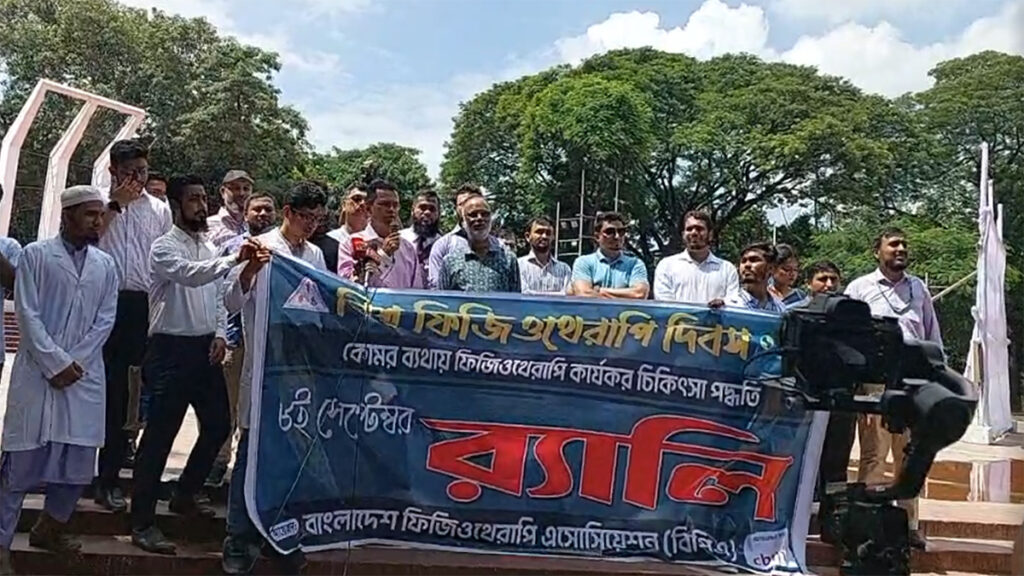 উল্লেখ্য, আজ বিশ্ব ফিজিওথেরাপি দিবস। এবারের প্রতিপাদ্য– কোমর ব্যথায় ফিজিওথেরাপি কার্যকর চিকিৎসা পদ্ধতি। এ উপলক্ষ্যে ফিজিওথেরাপি এসোসিয়েশনের পক্ষ থেকে আজ সকাল ১১টা থেকে বিকেল ৩টা পর্যন্ত ঢাকা বিশ্ববিদ্যালয়ের মেডিকেল সেন্টারে বৈষম্যবিরোধী আন্দোলনে আহত ছাত্র-জনতা এবং বাত, ব্যথা ও প্যারালাইসিসের রোগীদের বিনামূল্যে ফিজিওথেরাপি চিকিৎসা দেয়া হয়।