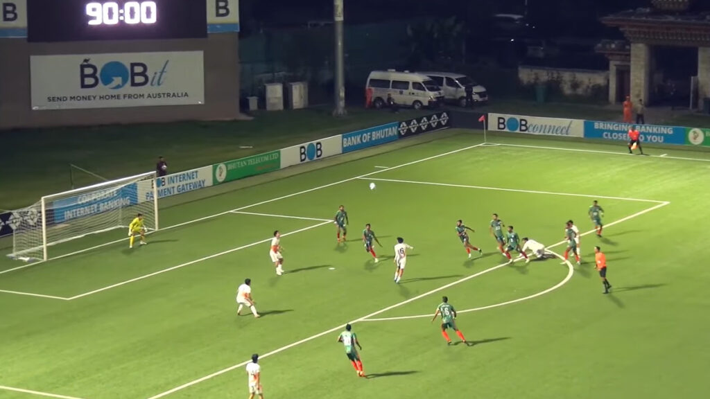 ভুটানের চাংলিমিথাং স্টেডিয়ামে আগের ম্যাচে জয়ের সুখ-স্মৃতি নিয়ে মাঠে নামে বাংলাদেশ। প্রতিপক্ষ হিসেবে ভুটান ছাড়াও সমুদ্রপৃষ্ঠ থেকে দেশটির উচ্চতাও বেশ ভুগিয়েছে লাল-সবুজদের। তবে সব সামলে আক্রমণে ওঠার চেষ্টা চালায় হ্যাবিয়ের ক্যাবরেরা শিষ্যরা। তবে প্রথমার্ধে নিজেদের ভুলে বেশ কিছু সুযোগ নষ্ট করে বাংলাদেশ। ফলে গোলশুন্য প্রথমার্ধ রেখে বিরতিতে যায় দুই দল।