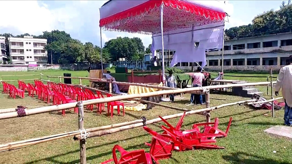 নাটোরে বৈষম্য বিরোধী ছাত্র আন্দোলনের আয়োজনে ছাত্র-জনতা মৈত্রী সমাবেশের মঞ্চ ভাঙচুরের ঘটনা ঘটেছে। বুধবার (১১ সেপ্টেম্বর) দুপুর দুইটার দিকে নবাব সিরাজ-উদ-দৌলা সরকারি কলেজ মাঠে মঞ্চ ভাঙচুর করে দুর্বৃত্তরা। বিকেল তিনটায় এই মঞ্চে সমাবেশ হওয়ার কথা ছিল। পরে চারটার দিকে কেন্দ্রীয় সমন্বয়করা পৌঁছালে সমাবেশ শুরু হয়।