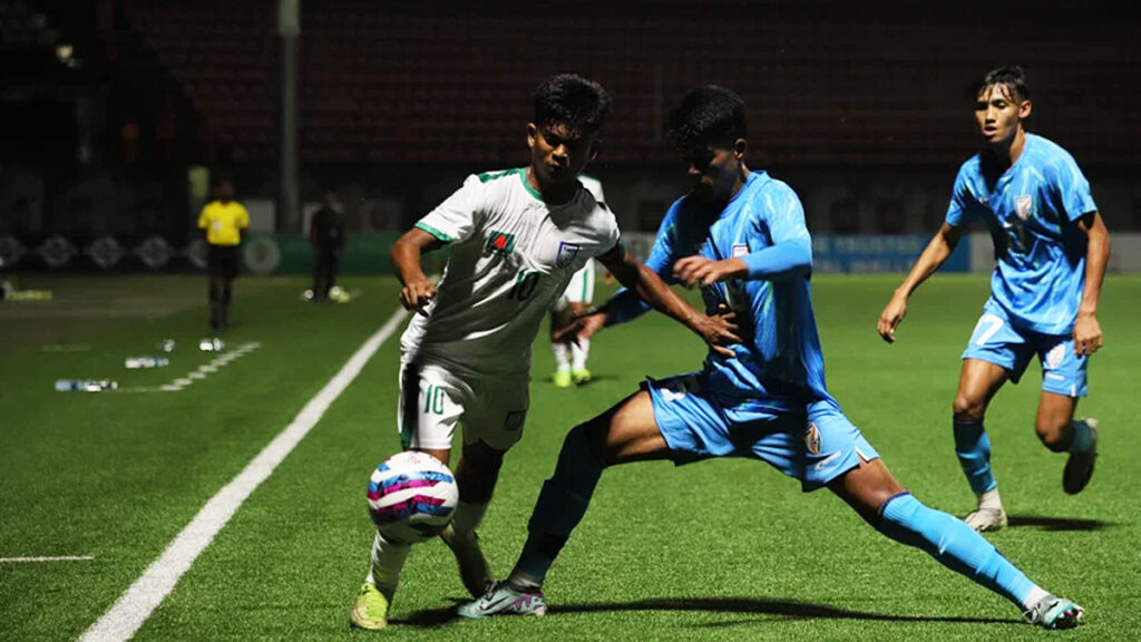 সাফ অনূর্ধ্ব-১৭ চ্যাম্পিয়নশিপের ‘এ’ গ্রুপের ম্যাচে ভারতের কাছে ১-০ গোলে হেরেছে বাংলাদেশ অনুর্ধ্ব-১৭ দল। ভুটানে থিম্পুর চাংলিমিথাং স্টেডিয়ামে শেষ মিনিটের গোলে নাটকীয় জয় পায় ভারত।