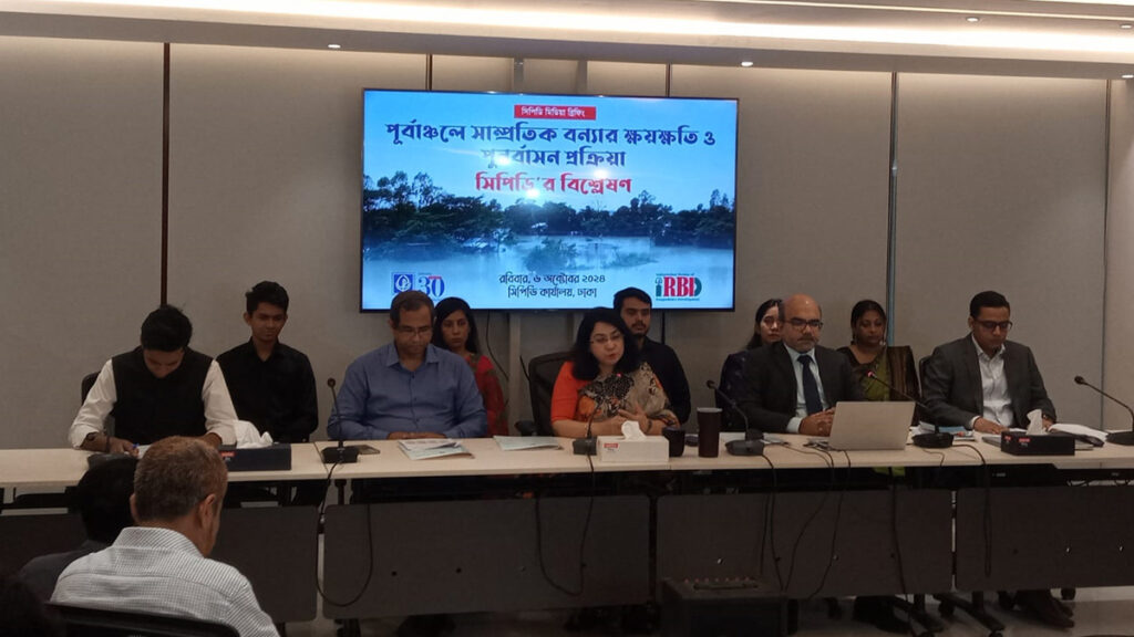 দেশের পূর্বাঞ্চলের সাম্প্রতিক বন্যায় কৃষি ও বনায়নে সবচেয়ে বেশি নেতিবাচক প্রভাব পড়েছে। এই বন্যায় ১৪ হাজার ৪২১ কোটি টাকার ক্ষয়ক্ষতি হয়েছে। এ তথ্য জানিয়েছে সেন্টার ফর পলিসি ডায়ালগ (সিপিডি)। রোববার (৬ অক্টোবর) সিপিডির কার্যালয়ে এ তথ্য জানান সংগঠনটির নির্বাহী পরিচালক ফাহমিদা খাতুন।