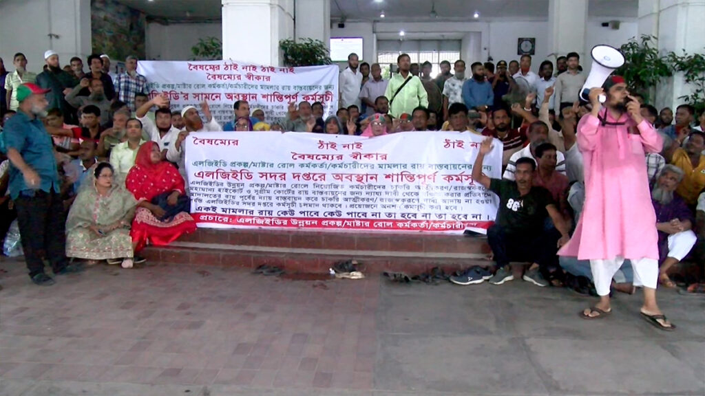 চাকরি স্থায়ীকরণের দাবিতে অবস্থান ধর্মঘট পালন করেছে স্থানীয় সরকার প্রকৌশল অধিদফতরের (এলজিইডি) তৃতীয় ও চতুর্থ শ্রেণীর কর্মচারীরা। রোববার (৬ অক্টোবর) সকালে রাজধানীর আগারগাঁওয়ে প্রতিষ্ঠানটির কার্যালয়ের সামনে এই কর্মসূচি পালন করেন তারা।