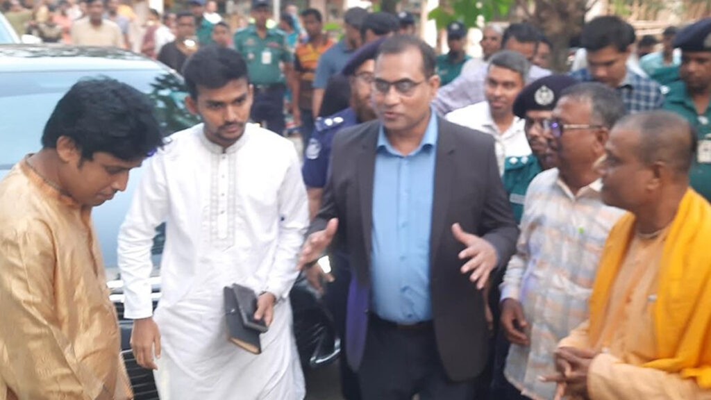 এ সময় প্রথমে তিনি গল্লামারি হরি মন্দির ও পরবর্তীতে বাগমারা গোবিন্দ মন্দির পরিদর্শন করেন। ধর্ম নিয়ে কেউ যেন উসকানি দিতে না পারে। এ বিষয়ে সকলের সহযোগিতাও কামনা করেন তিনি।