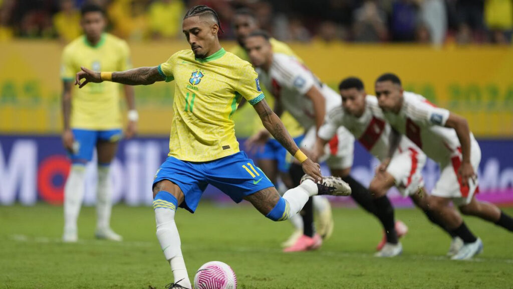 বুধবার (১৬ অক্টোবর) ব্রাসিলিয়ার গারিঞ্চা স্টেডিয়ামে পেরুকে আতিথ্য দেয় পাঁচবারের বিশ্বচ্যাম্পিয়ন দল ব্রাজিল। ঘরের মাঠে শুরু থেকেই গোছানো ফুটবল খেলে দরিভাল জুনিয়রের শিষ্যরা। তবে হতাশ করে প্রতিপক্ষের রক্ষণে গিয়ে। গোলের ভালো সুযোগ তৈরি করতে, লক্ষ্যে প্রথম শট নিতে লেগে যায় অনেক সময়- ৩৮ মিনিট। সেটিও সম্ভব হয় পেনাল্টিতে!