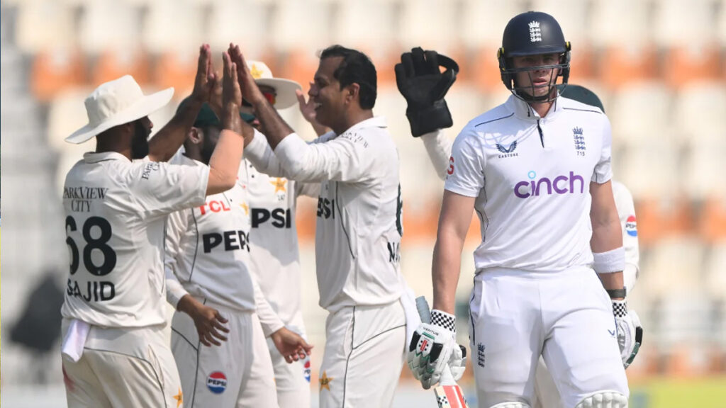 শুক্রবার (১৮ অক্টোবর) মুলতান ক্রিকেট স্টেডিয়ামে ২ উইকেটে ৩৬ রান নিয়ে চতুর্থ দিনে খেলা শুরু করে ইংল্যান্ড। জয়ের জন্য ইংল্যান্ডের দরকার ছিল ২৬১ রান আর পাকিস্তানের ৮ উইকেট। আজ দিনের দ্বিতীয় ওভারেই ওলি পোপকে ফিরিয়ে সেই জয়ের পথে এগিয়ে দেয়ার কাজটি শুরু করেন সাজিদ খান। ২২ রান করে আউট হন পোপ।