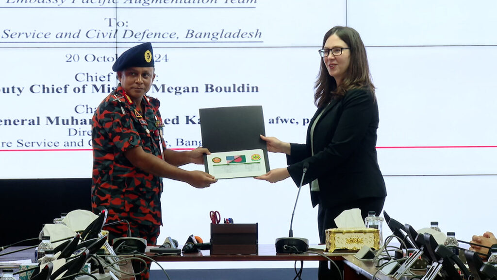 সরঞ্জামসমূহের মধ্যে রয়েছে, মার্কিন দূতাবাসের প্যাসিফিক অগমেন্টেশন টিমের মাধ্যমে আটটি নৌকা, ১১০টি লাইফ ভেস্ট এবং অন্যান্য জরুরি উদ্ধার সরঞ্জাম। যা প্রাকৃতিক দুর্যোগে বাংলাদেশের ফায়ার সার্ভিস ও সিভিল ডিফেন্সের সক্ষমতা বাড়াবে। এ ছাড়াও, বিপজ্জনক পদার্থ থেকে সুরক্ষার জন্য ১২০টি ডিসপোজেবল কভারঅল এবং ১০০টি মেডিকেল ব্যাগ প্রদান করা হয়েছে। যা- স্বাস্থ্য নিরাপত্তা বা পরিবেশের জন্য বিপজ্জনক পদার্থ থেকে কর্মীদের সহায়তা করবে।
