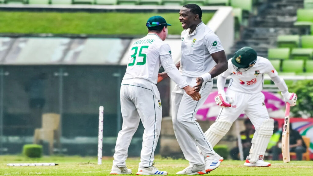 প্রোটিয়াদের পক্ষে তিনটি করে উইকেট শিকার করেছেন কাগিসো রাবাদা, উইয়ান মুল্ডার ও কেশব মহারাজ। একটি উইকেট পেয়েছেন পিয়েট।