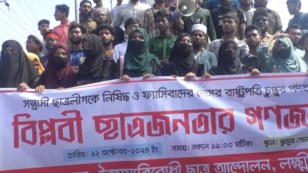 এ সময় বক্তারা বলেন, দ্রুত সময়ের মধ্যে সকল অপকর্মের সাথে জড়িত আওয়ামী লীগ নেতাকর্মীদের গ্রেফতার ও ছাত্রলীগের রাজনীতি নিষিদ্ধ এবং ফ্যাসিবাদের দোসর রাষ্ট্রপতি পদত্যাগ না করলে পুনরায় তারা মাঠে নেমে আন্দোলনের মাধ্যমে দাবি আদায় করবেন।