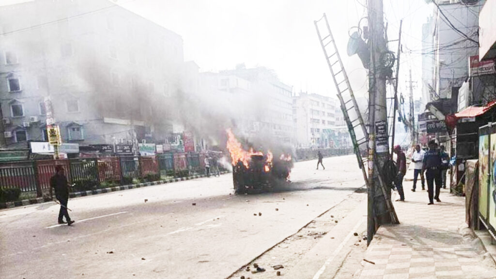 এ সময় বিক্ষোভকারী শ্রমিকদের সঙ্গে আইনশৃঙ্খলা বাহিনীর সদস্যদের ধাওয়া পাল্টা-ধাওয়ার ঘটনা ঘটে। আর আইনশৃঙ্খলা বাহিনীকে লক্ষ্য করে ইট পাটকেল ছুড়ে শ্রমিকরা। পরিস্থিতি নিয়ন্ত্রণে আনতে একপর্যায়ে পুলিশও লাটিপেঠা করে। একপর্যায়ে বেলা পৌনে ১০টার দিকে সেনাবাহিনীর একটি গাড়ি এবং পুলিশের একটি গাড়িতে আগুন ধরিয়ে দেয়া হয়। পরে ফায়ার সার্ভিসের কর্মীরা এসে আগুন নিভিয়ে ফেলেন। সকাল সাড়ে থেকে ১১টা পর্যন্ত সংঘর্ষ চলে।