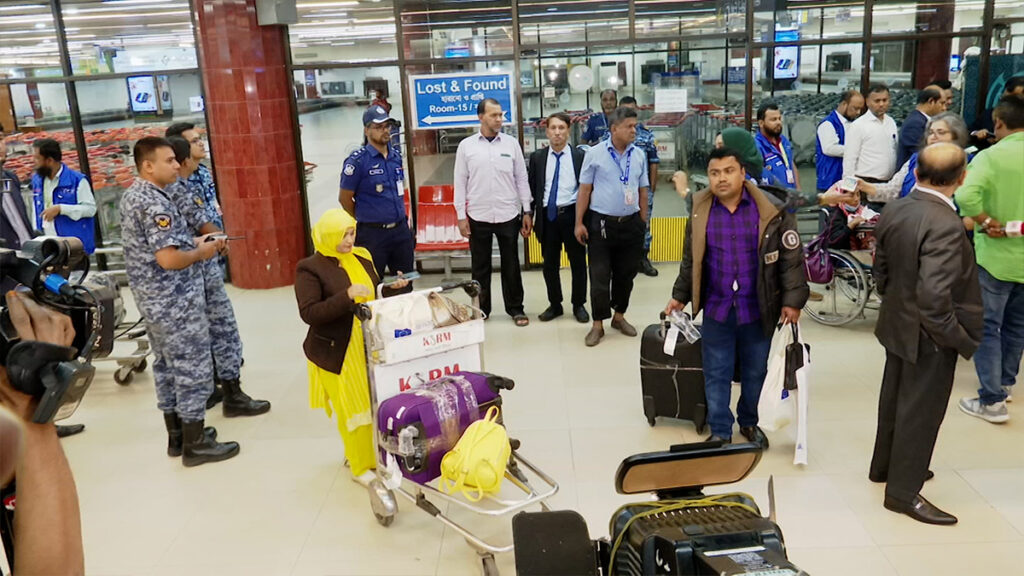 এ সময় বিমানবন্দরে প্রবাসী কল্যাণ ও বৈদেশিক কর্মসংস্থান মন্ত্রণালয়ের সচিব মো. রুহুল আমিন, পররাষ্ট্র মন্ত্রণালয়ের অতিরিক্ত সচিব সারোয়ার আলম এবং আন্তর্জাতিক অভিবাসন সংস্থার বাংলাদেশের ভারপ্রাপ্ত প্রধান কর্মকর্তা ফাতেমা নুসরাত গাজালী তাদের অভ্যর্থনা জানান। বাংলাদেশ সরকারের উদ্যোগে এসব বাংলাদেশিদের দেশে ফিরতে সহযোগিতা করেন আন্তর্জাতিক অভিবাসন সংস্থা (আইওএম)।