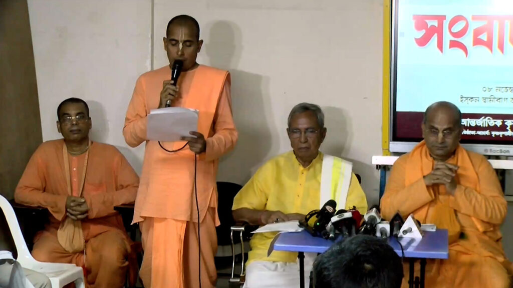 আজ শুক্রবার (৮ নভেম্বর) সকালে রাজধানীর পুরান স্বামীবাগে ইসকন কার্যালয়ে এক সংবাদ সম্মেলনে দায় অস্বীকারের পাশাপাশি ওই ঘটনায় দায়ীদের উপযুক্ত শাস্তি দেয়ার দাবি জানান ইসকন নেতারা।