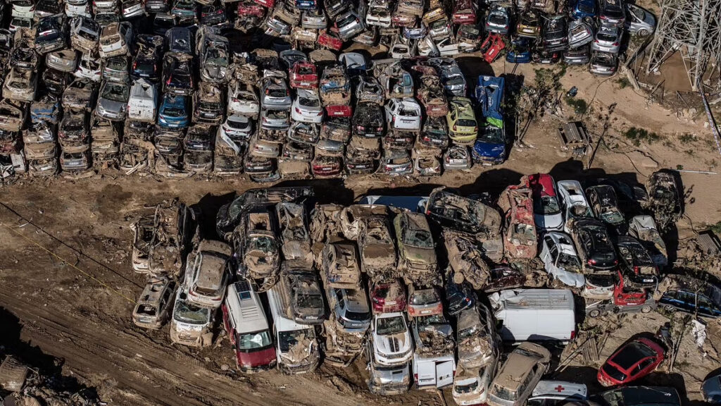 বন্যায় ভেসে আসা লক্ষাধিক গাড়ি নিয়ে চরম বিপাকে, স্পেনের ভ্যালেন্সিয়া প্রদেশ। রীতিমতো পরিত্যক্ত গাড়ির ভাগাড়ে পরিণত হয়েছে প্রদেশটির রাজধানী। এক প্রতিবেদনে তুরস্কের সংবাদমাধ্যম আনাদোলু এজেন্সি এ তথ্য জানায়।