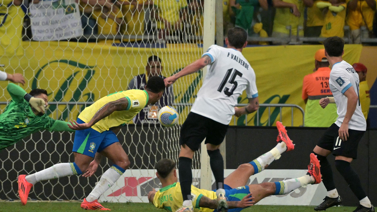 প্রথমার্ধে আক্রমণভাগে ছন্নছাড়া পারফরম্যান্সের পর দ্বিতীয়ার্ধের ১০ মিনিটের মাথায় গোল হজম করতে হয় ব্রাজিলকে। ভালভার্দের গোলে এগিয়ে যায় উরুগুয়ে। সেখান থেকেই অবশ্য ঘুরে দাড়িয়েছে সেলেসাওরা।