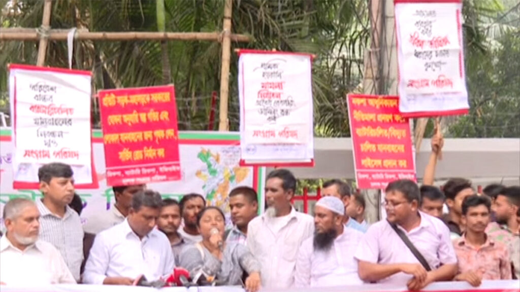 শনিবার (২৩ নভেম্বর) সকালে জাতীয় প্রেসক্লাবের সামনে আয়োজিত সমাবেশে সাত দফা তুলে ধরে সংগ্রাম পরিষদের নেতা কর্মীরা। তাদের সাতটি দাবির মধ্যে রয়েছে নীতিমালা অনুযায়ী ইজিবাইক, রিকশাসহ ব্যাটারিচালিত যানবাহনের নিবন্ধন, চালকদের লাইসেন্স ও রুট পারমিট প্রদান, কারিগরি ত্রুটি সংশোধন করে ব্যটারিচালিত যানবাহনের আধুনিকায়ন করা।