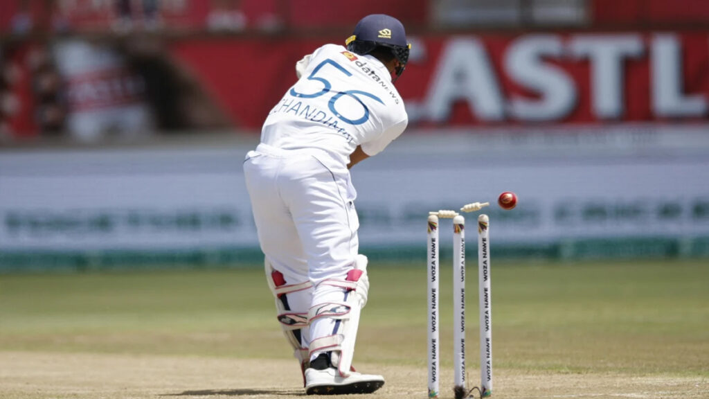 অবশ্য ১৬ রানে চতুর্থ উইকেটের পতনের পর কামিন্দু মেন্ডিস ও ধনাঞ্জয়া কিছুটা ঘুরে দাঁড়ানোর চেষ্টা করেন। স্কোরবোর্ডে যখন ৩২ রান, মেন্ডিসকে প্রথম স্লিপে ক্যাচ বানিয়ে জুটি ভাঙেন জেরাল্ড কোয়েৎজি।