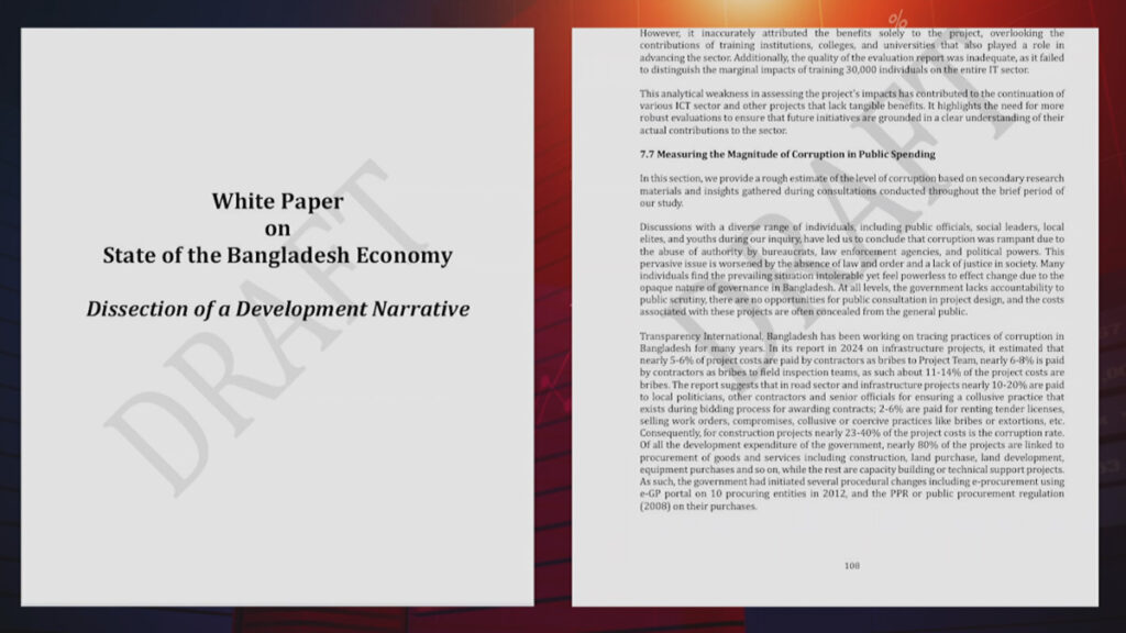 অর্থনৈতিক শ্বেতপত্র প্রতিবেদনে বলা হয়, ব্যাংক খাতের লুট হওয়া অর্থ দিয়ে তৈরি করা যেত ২৪টি পদ্মা সেতু। বিশ্লেষকরা মনে করেন, সংস্কারমূলক উদ্যোগ বাস্তবায়ন করে তছনছ হওয়া অর্থনীতিকে টেনে তুলতে হবে।