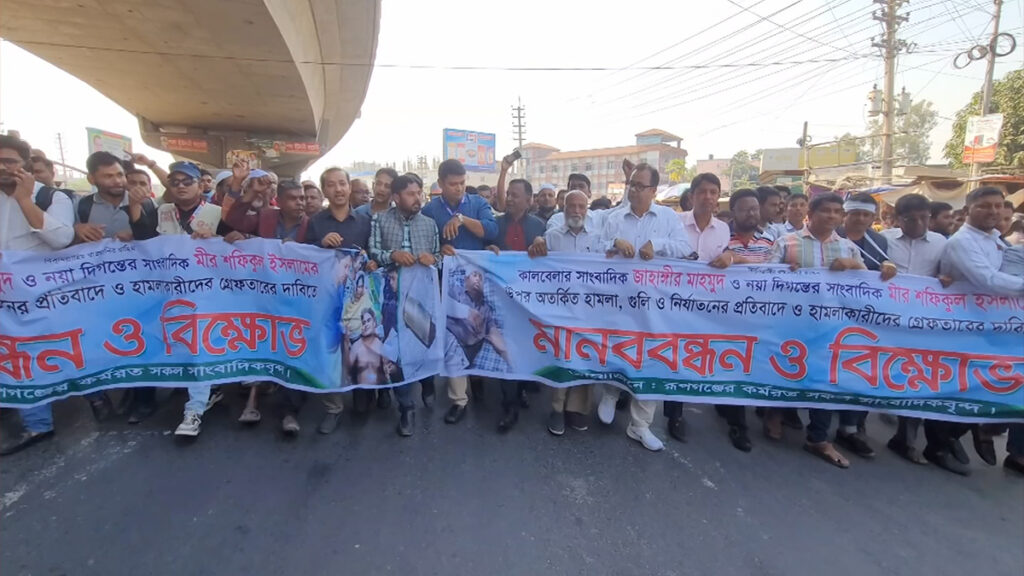 সাংবাদিকদের নিরাপত্তা ও হামলায় জড়িতদের গ্রেফতার দাবি করে বিক্ষোভ-মানববন্ধন করা হয়। এতে আশপাশের এলাকার সংবাদকর্মীরাও যোগ দেন। পরে মিছিল বের করেন আন্দোলনকারীরা। এসব ঘটনায় ৭২ ঘণ্টার মধ্যে হামলাকারীদের গ্রেফতার করা না হলে মহাসড়ক অবরোধের ঘোষণা দেন সংবাদকর্মীরা।