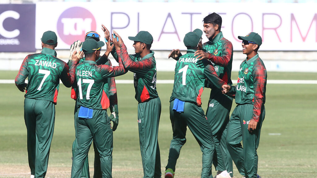১১৭ রানের জবাবে নেমে ২৮ রানেই দুই ওপেনারকে হারায় বাংলাদেশ। কালাম সিদ্দিকী ফেরেন কোনো রান না করেই। ইনফর্ম ব্যাটার জাওয়াদ আবরার ফেরেন মাত্র ১৭ রান করে। এরপর অধিনায়ক আজিজুল ও মোহাম্মদ শিহাব গড়েন ৫৭ রানের জুটি। ২৬ রান করে শিহাব ফিরলেও রিজান হোসেনকে সঙ্গে নিয়ে ম্যাচ জিতেই মাঠ ছাড়ে অধিনায়ক আজিজুল। ৩৫ রানের এই জুটিতে রিজানের অবদান মাত্র ৫ রান। বাকিটা আসে অধিনায়কের ব্যাট থেকেই। আজিজুলের ৪২ বলে ৬১ রানের ইনিংসটি সাজানো ছিল সাতটি চার ও তিনটি ছক্কায়। ফাইনালে বাংলাদেশের প্রতিপক্ষ ভারত।