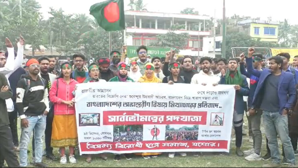 বাংলাদেশের অভ্যন্তরীণ বিষয়ে ভারতের মিডিয়াতে মিথ্যাচারের প্রতিবাদে বেনাপোল সীমান্তে পদযাত্রা করেছে বৈষম্য বিরোধী ছাত্রসমাজ। সোমবার (৯ ডিসেম্বর) দুপুরে সার্বভৌমত্বের পদযাত্রা শীর্ষক শিরোনামে এই পদযাত্রা শুরু হয় বেনাপোলের বলফিন্ড মাঠ থেকে।