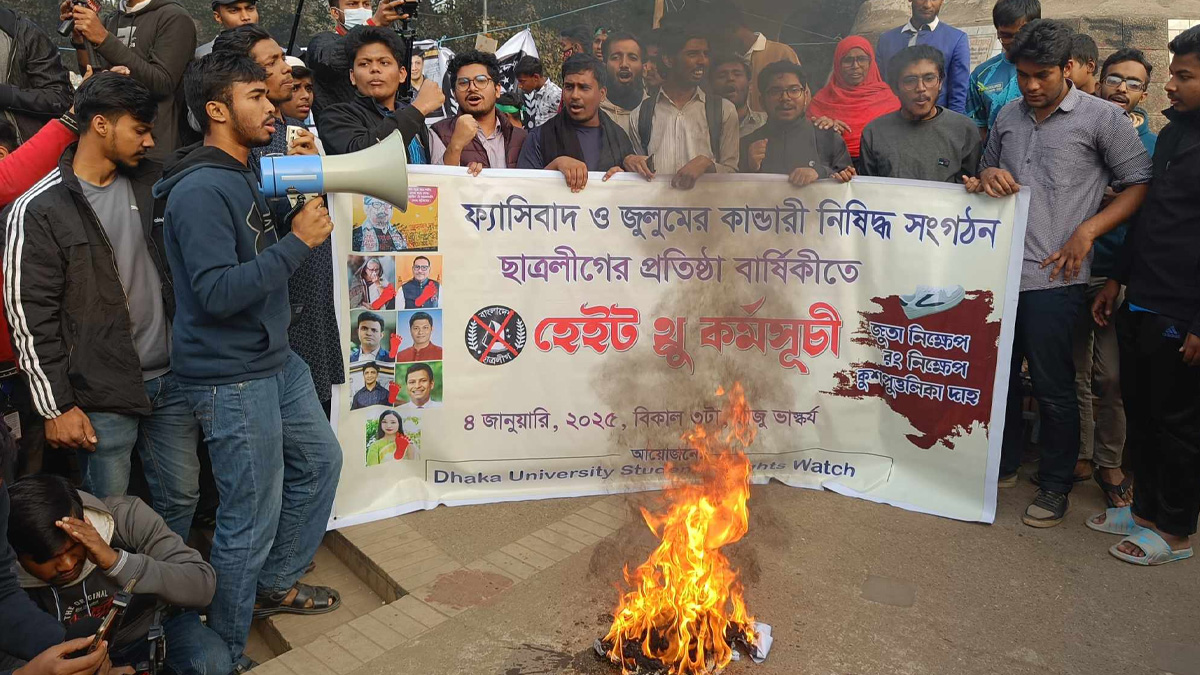 ছাত্রলীগের প্রতিষ্ঠাবার্ষিকীতে ঢাকা বিশ্ববিদ্যালয়ে ‘হেইট থ্রু’ কর্মসূচি পালন করেছে সাধারণ শিক্ষার্থীরা। শনিবার (৪ ডিসেম্বর) স্টুডেন্টস রাইটস ওয়াচের ব্যানারে সাধারণ শিক্ষার্থীরা হেইট থ্রু কর্মসূচির আয়োজন করে ।