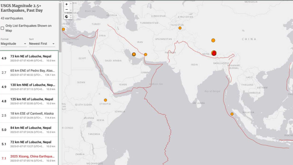 ৭ দশমিক ১ মাত্রার শক্তিশালী ভূমিকম্পে কেঁপে উঠলো চীন-নেপাল সীমান্ত। মঙ্গলবার (৭ জানুয়ারি) স্থানীয় সময় ভোর সাড়ে ছয়টার দিকে তিব্বত ও আশপাশের এলাকায় অনুভূত হয় কম্পন।