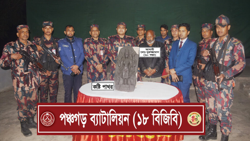 মঙ্গলবার (৭ জানুয়ারি) রাতে পঞ্চগড় ব্যাটালিয়নের (১৮ বিজিবি) অধীনস্থ মীরগড় বিওপি এলাকায় সীমান্ত পিলার ৪২২ থেকে সাড়ে ৪ কিলোমিটার বাংলাদেশের অভ্যন্তরে ডোকরো পাড়া এলাকা থেকে কষ্টি পাথরটি উদ্ধার করা হয়।