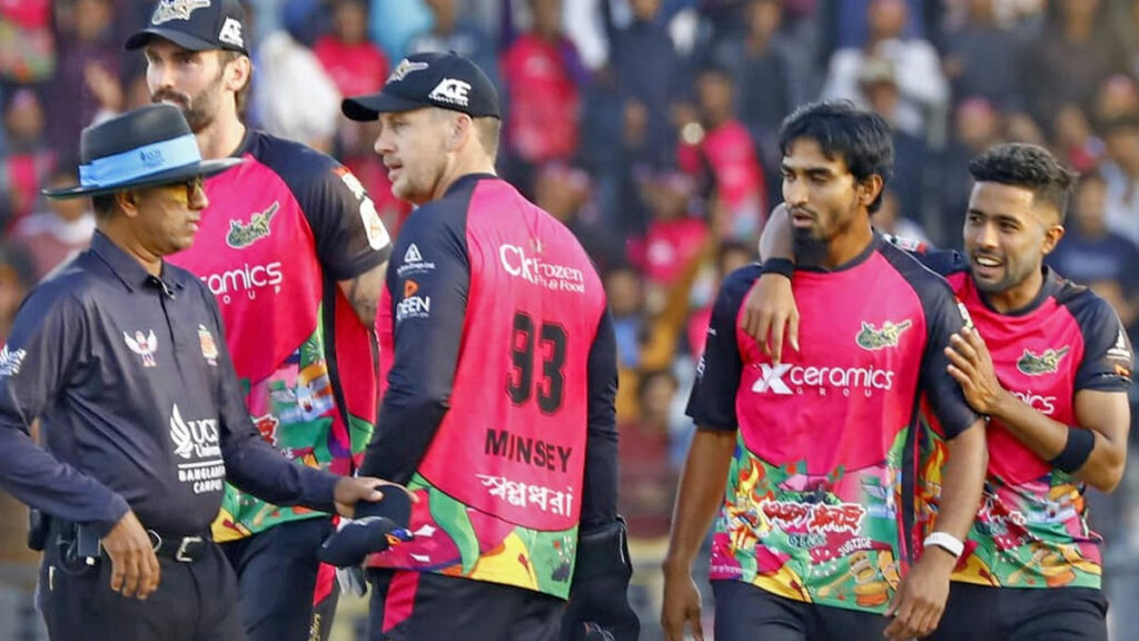 এক পর্যায়ে যখন ৩ বলে ১০ রানের সমীকরণ দাঁড়ায় খুলনার সামনে, তখন রুয়েল মিয়ার অফ স্টাম্পের বাইরের বল উড়িয়ে মারেন রনি। ডিপ কাভারে দাঁড়িয়ে থাকা তানজিম সাকিব ক্যাচ ধরতেই রুয়েলের বাঁধভাঙা উদযাপন। রনি আউট হওয়ার পরের বলে অঙ্কনও রানআউট হয়ে ফিরলে খুলনার জয়ের আশা শেষ হয়ে যায়।