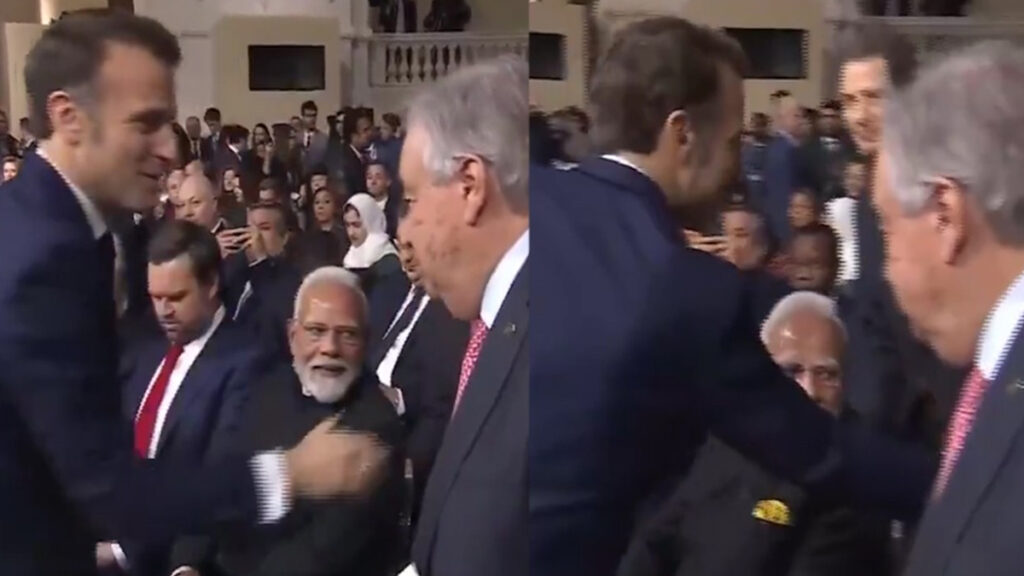 সামাজিক যোগাযোগমাধ্যমে ছড়িয়ে পড়া একটি ভিডিওতে দেখা যায়, জেডি ভ্যান্সের পাশে বসা নরেন্দ্র মোদি হাত বাড়িয়ে দিলে তাকে পুরোপুরি এড়িয়ে যান ম্যাকরন।
