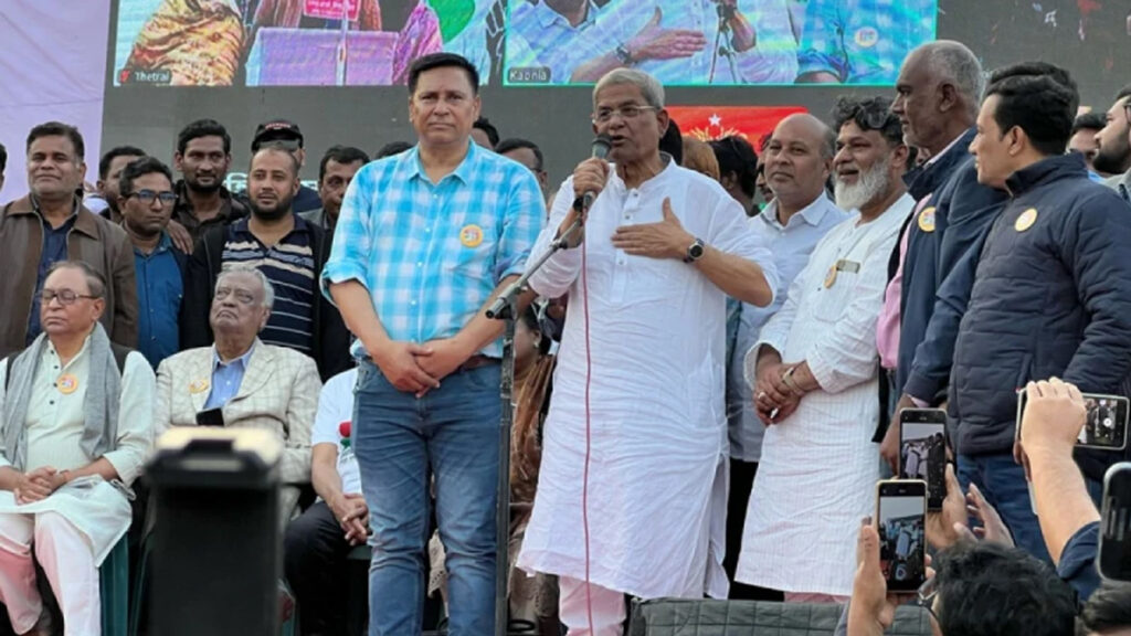 মির্জা ফখরুল আরও বলেন, বহু আগে থেকে আমরা এই তিস্তার পানির ন্যায্য হিস্যার কথা বলছি। পাকিস্তান আমলে পাকিস্তানিরা বলেছে, বাংলাদেশ হওয়ার পরে আমরা বলেছি। আওয়ামী লীগের সরকার এলো, প্রথম দিকে সবাই ভাবলো যে, ভারতের বন্ধু আওয়ামী লীগ, সুতরাং তিস্তার পানি বোধ হয় এবার পাই (পেয়ে) যাবে—লবডঙ্কা! ১৫ বছরে বাংলাদেশটাকে বেচে দিছে, তিস্তার এক ফোঁটা পানি আনতে পারে নাই।