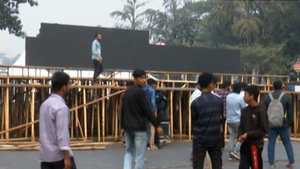 মঞ্চের পাশাপাশি ওয়াশরুম ও বিভিন্ন বুথ নির্মাণেরও কাজ চলতে দেখা গেছে। গতকাল সন্ধ্যা থেকে পুরোদমে কাজ শুরু হয়। এরপর শ্রমিকদের কাজ চলে গভীর রাত পর্যন্ত। আজ সকালবেলায়ও ব্যস্ত সময় পার করছেন তারা।