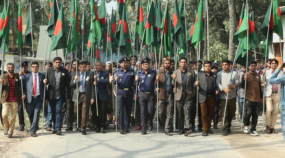 অনুষ্ঠানে পাবনার বিভিন্ন ব্যবসায়ী ও সামাজিক সাংস্কৃতিক প্রতিষ্ঠানের মাঝে এক হাজার জাতীয় পতাকা ও এক হাজার ব্যাজ বিতরণ করা হয়।