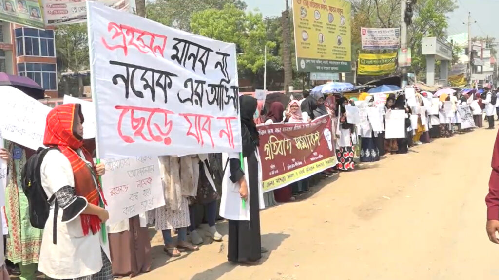 শনিবার (১৫ মার্চ) বেলা ১১টা থেকে দুপুর ১টা পর্যন্ত শহরের মুক্তির মোড়ে শিক্ষার্থী ও বিভিন্ন পেশার সচেতন নাগরিকরা বিক্ষোভে যোগ দিয়ে রাস্তায় নেমে আসে।