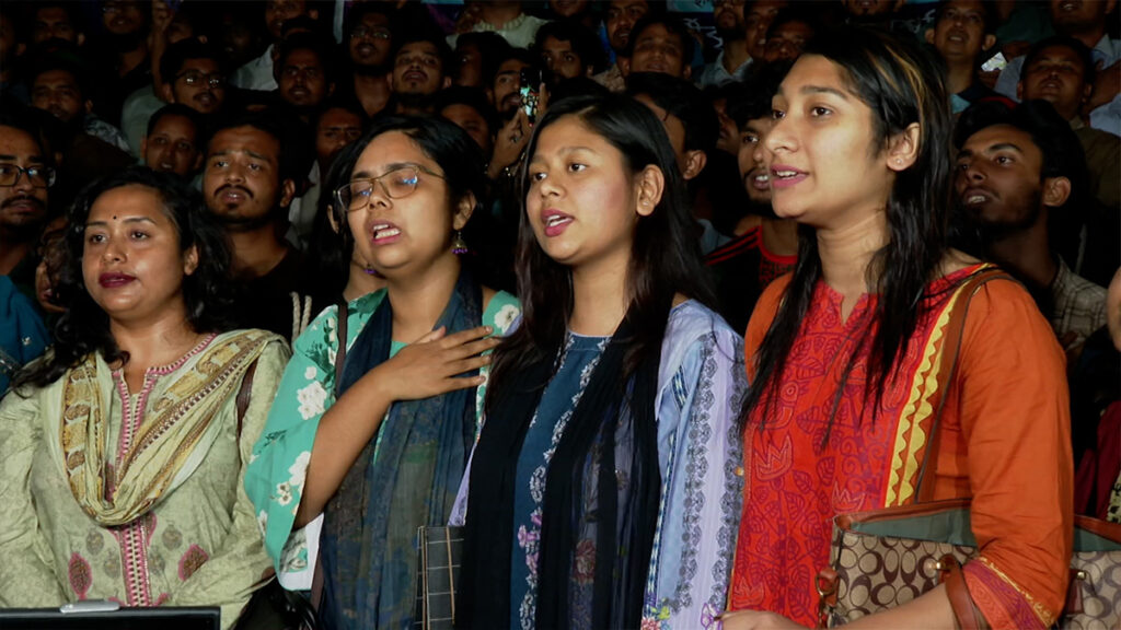 জাতীয় সংগীত পরিবেশন শেষে শিক্ষার্থীরা বলেন, যারা জাতীয় সংগীতের অবমাননা করবে, তাদের ঠাঁই এই বাংলাদেশে হবে না। জাতীয় পতাকা এবং জাতীয় সংগীতে আঘাত মানে আমাদের ইতিহাস ও অস্তিত্বে আঘাত।