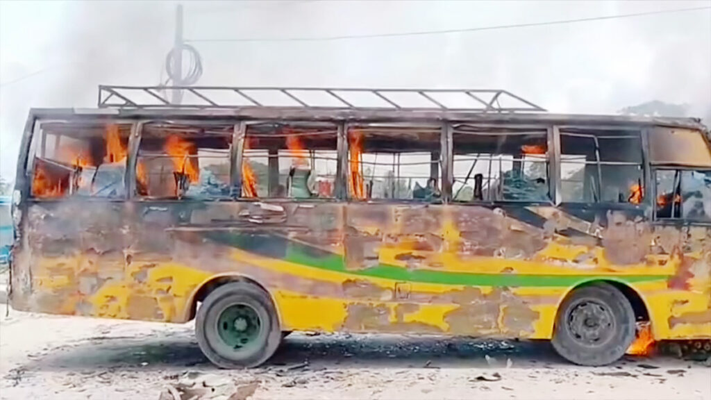 এ ঘটনায় বিক্ষুব্ধ জনতা বাসটিতে আগুন ধরিয়ে দেয়। তবে পালিয়ে যায় চালক ও হেলপার। অপরদিকে, লক্ষ্মীপুর ও জামালপুরে সড়ক দুর্ঘটনায় নিহত হয়েছেন আরও দুজন।