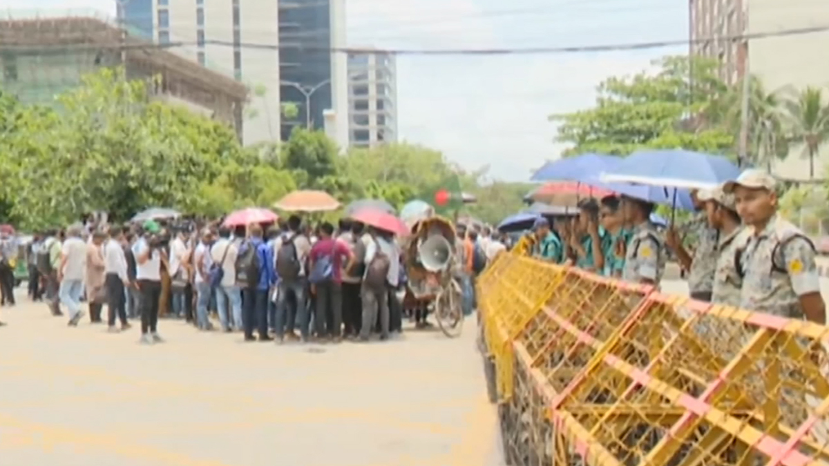 এদিকে এনসিপির এই বিক্ষোভ কর্মসূচিকে কেন্দ্র করে নির্বাচন ভবনের আশপাশে পাঁচ স্তরের নিরাপত্তা গ্রহণ করা হয়েছে। সকাল থেকেই কঠোর অবস্থানে রয়েছে পুলিশ। ইসি ভবনের সামনের রাস্তায় দেয়া হয়েছে কাঁটাতারের ব্যারিকেড।