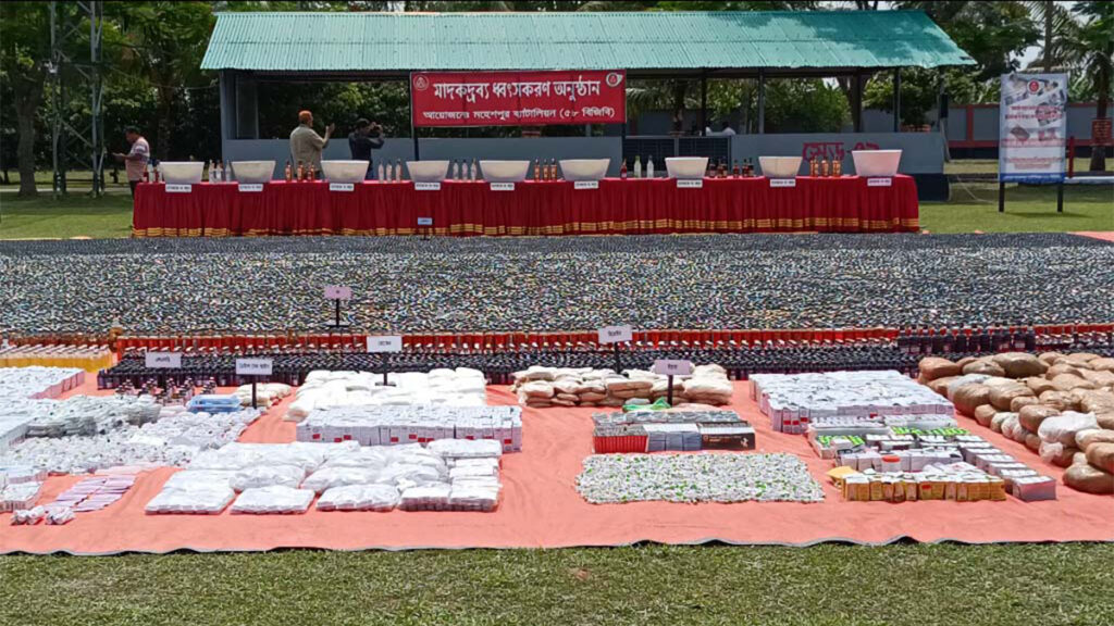 ধ্বংসকৃত মাদকদ্রব্যের মধ্যে রয়েছে, ২৫ হাজার ৮১৩ বোতল ভারতীয় ফেনসিডিল, ৩৮ হাজার ৯৮০ বোতল মদ, ১৩০ কেজি গাঁজা, ৬৫ হাজার ১৭৪ পিস ইয়াবা ট্যাবলেট, ৩৭ কেজি হেরোইন, ৭৯ কেজি কোকেইন, ক্রিস্টাল মিথ আইস ৭ কেজি, এলএলডি ২৯ বোতল, ২১ হাজার ৩১৬ পিস ভায়াগ্রা ট্যাবলেট, ট্যাপেন্টাডল ট্যাবলেট ৩০ হাজার ৭০ পিস, ভারতীয় ওষুধ ৯ হাজার ৮৪৫ পিস এবং বাংলাদেশি ওষুধ ৯ হাজার ৯৬০ পিস।